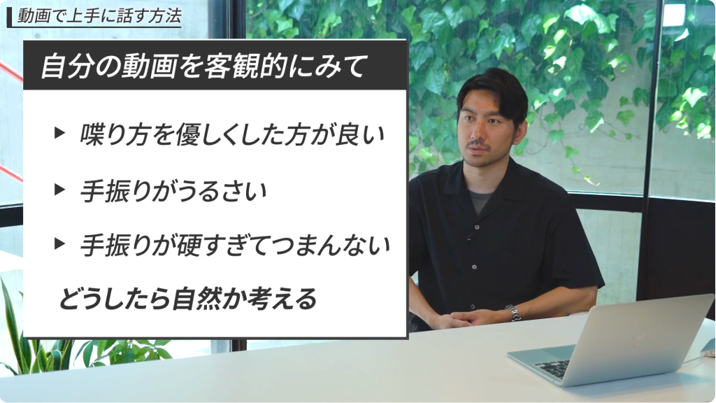 最初はぎこちなく、硬い喋り方だったとしても、内容を整理し、動画を見返して改善し続けた結果、自然に話せるようになります。