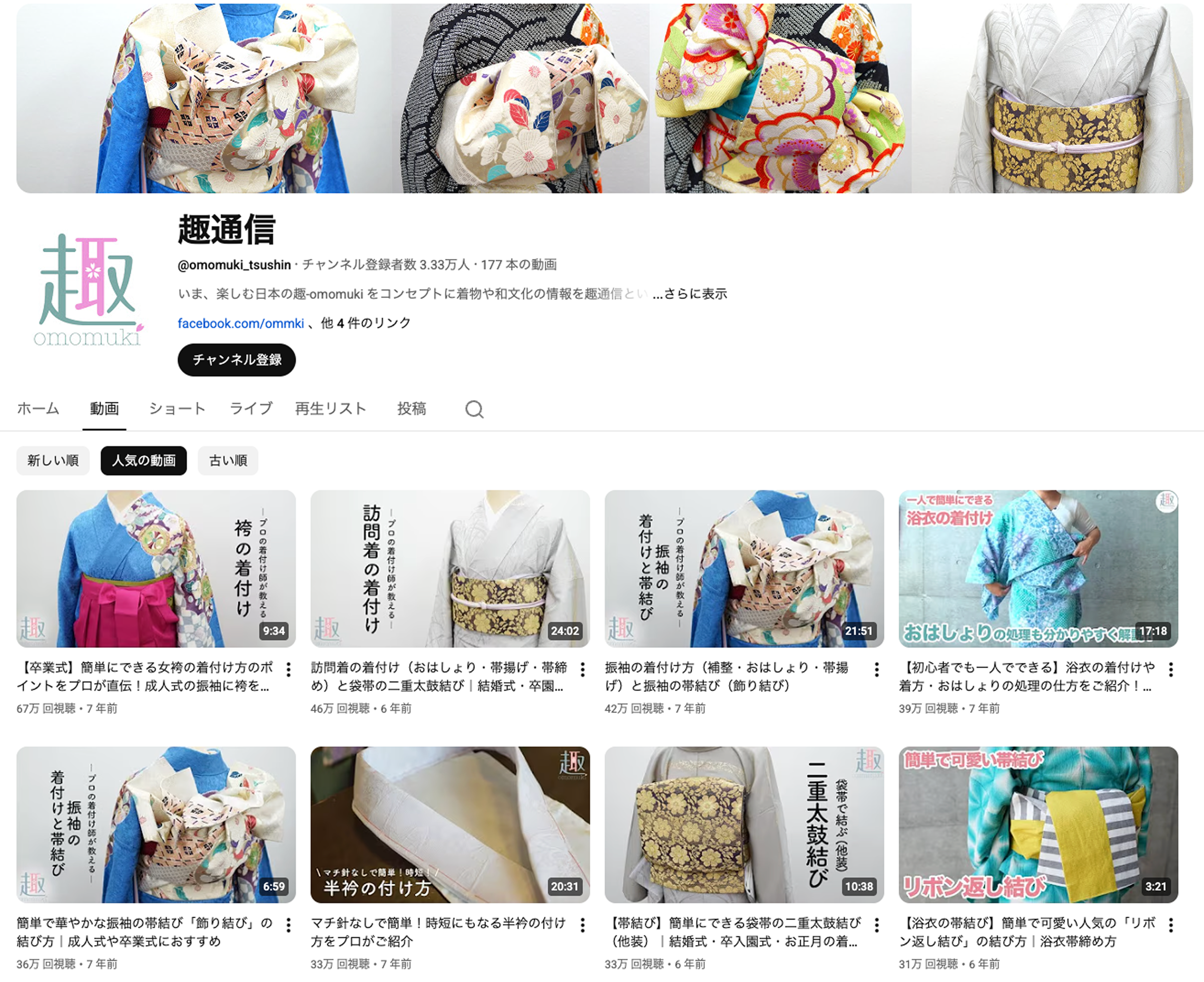 「趣通信」のYouTubeチャンネルを立ち上げ、着物の着方や帯の結び方などご紹介